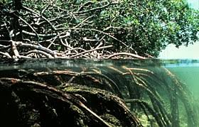 manglares: Los manglares son un tipo de bosque localizados en hábitat costero y salino.